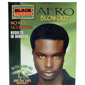 Black Thang Afro Blow Out Kit with olive oil and tea tree extract is no mix, no mess. Kit contains Neutralizing Conditioning Shampoo, Texturizing Cream, Olive Oil Leave-In Conditioner and Protective Gel.