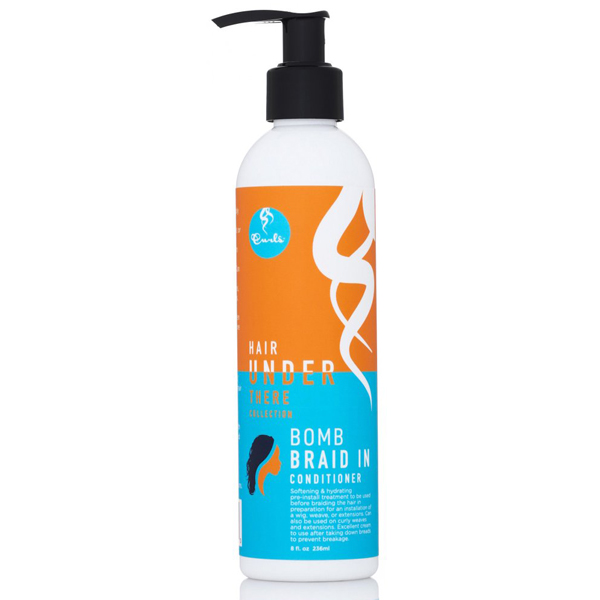 Curls Hair Under There Bomb Braid In Conditioner. Softening & hydrating pre-install treatment to be used before braiding the hair in preparation for an installation of a wig, weave, or extensions. This leave in conditioner can also be used on curly weaves and extensions. Excellent cream to use after taking down braids to prevent breakage. Braiding dry, brittle, moisture deprived hair will only further damage your hair. Start with conditioned hair with this protective “braid in” conditioner.